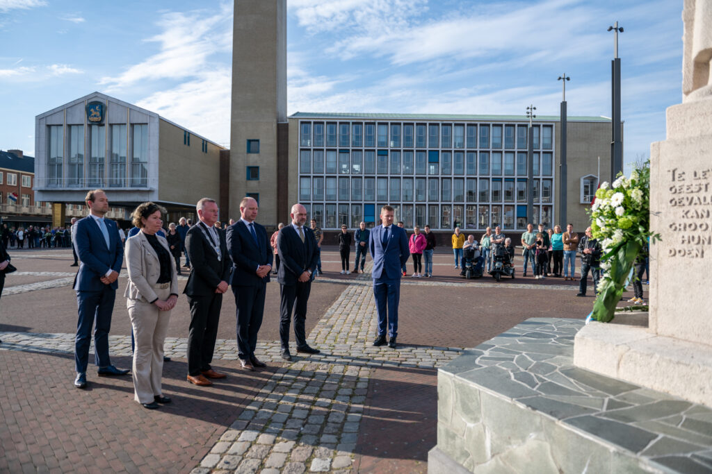 Nadat het Wilhelmus had geklonken sprak burgemeester Frank Dales: ,,Nóóit meer oorlog. Dat is een lege zin als je er niets aan doet. Houd je ogen open. Laten we goed in de gaten houden wie zich opwerpen als onze leiders. De grootste vijanden zijn de machtswellustelingen. Zij die groepen wegzetten, met een mooi verhaal komen, intolerant zijn. Hier in Velsen kun je zijn wie je bent, denken wat je denkt en zeggen wat je denkt.’’ Vervolgens werden kransen gelegd.