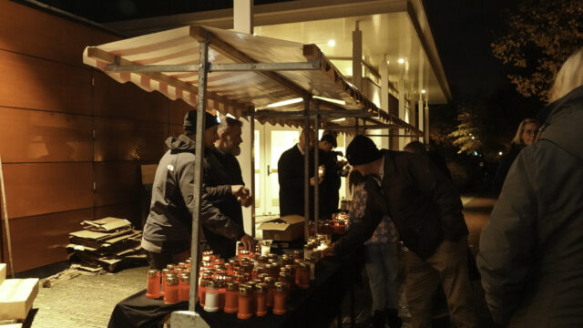 Driehuis – Altijd weer een mooi moment, de jaarlijkse herdenking op begraafplaats Westerveld in het kader van Allerzielen. Het geeft een gevoel van saamhorigheid om in elkaars aanwezigheid stil te staan bij hen die ons in de loop der tijd zijn ontvallen. Met kaarsjes, poëzie, muziek en handgeschreven persoonlijke boodschappen van de bezoekers werd het zondag als vanouds een betekenisvolle avond. (Foto: Ton van Steijn)
