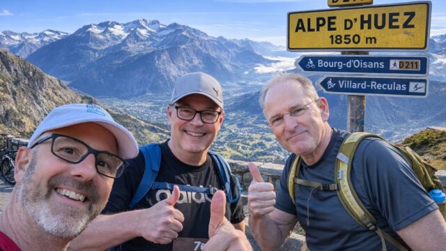 Edwin, Marcel en Jurrien gaan de legendarische Alpe d’Huez te lijf voor Anita. Foto: aangeleverd