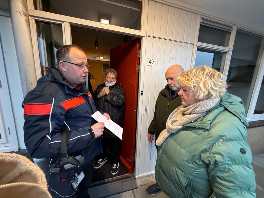 De brandweer deelde formulieren uit voor een persoonlijk vluchtplan, zodat bewoners thuis verder kunnen nadenken over hun vluchtroute en afspraken met huisgenoten of buren.