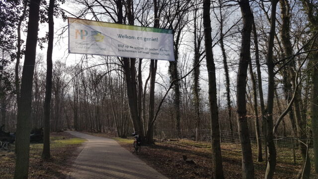 Bij ingang Heerenduinweg heeft de boswachter een vriendelijk verzoek opgehangen om vooral op de paden te blijven. Op een spandoek, vastgemaakt in de bomen langs het wandel- en fietspad, staat te lezen: ‘Welkom en geniet! Blijf op de wegen en paden: Samen beschermen wij onze mooie natuur!’