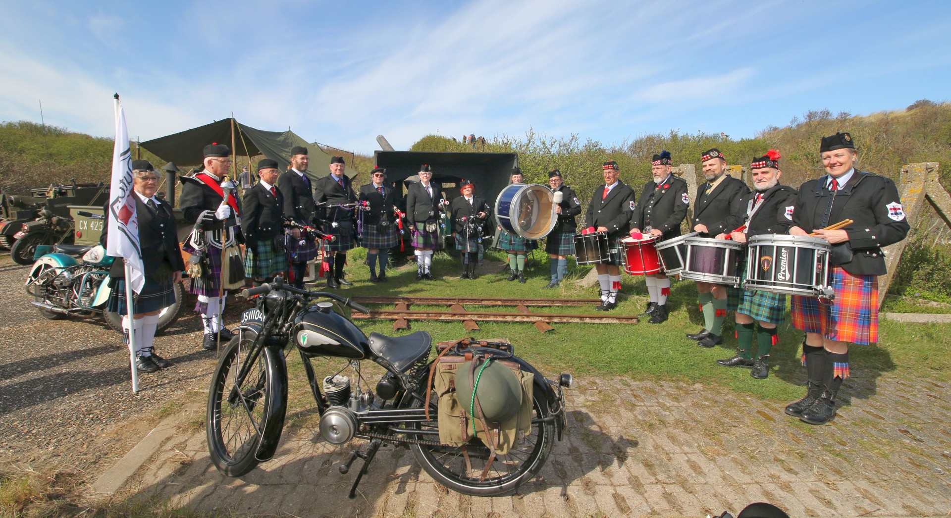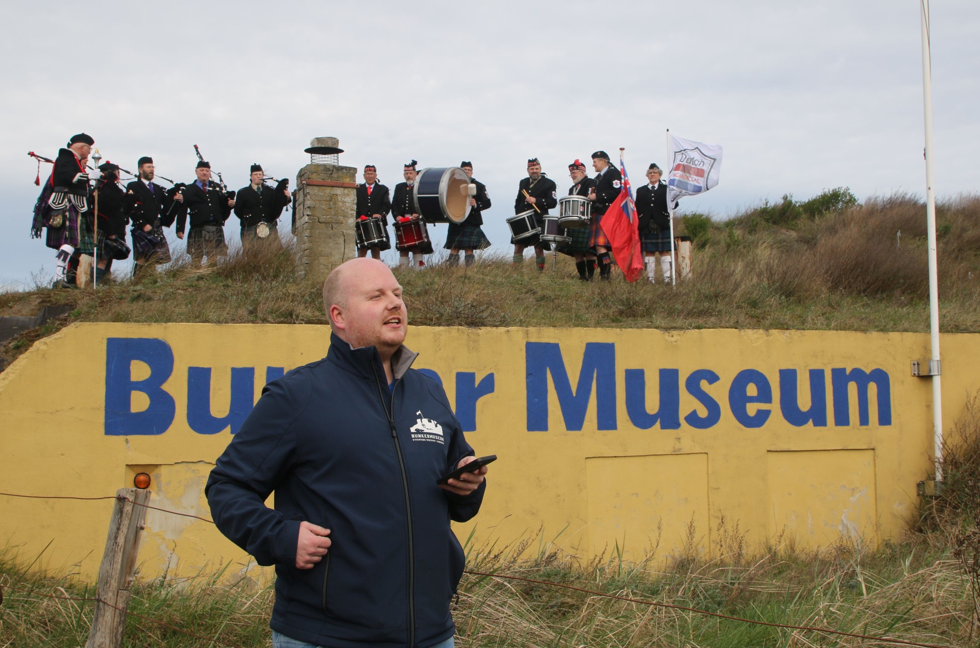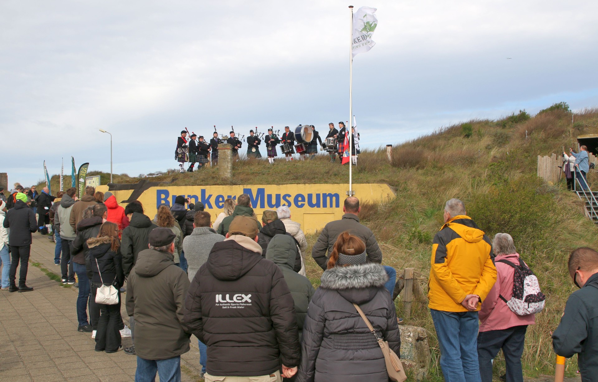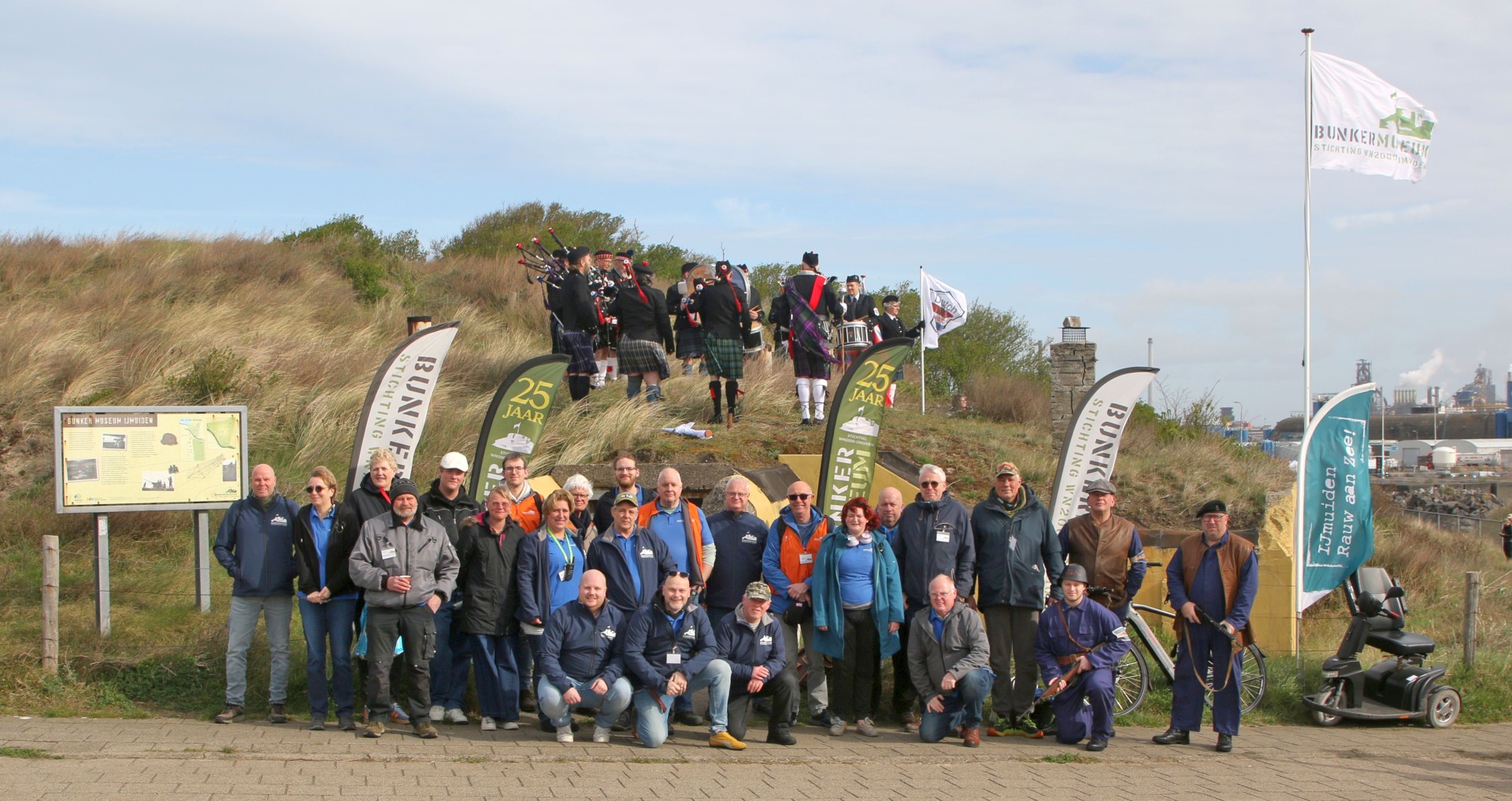 Na het startschot met een confettikanon lieten de in Schotse rok gestoken dames en heren van Dutch Memorial Pipes & Drums van zich horen, gewapend met doedelzakken en trommels, vanaf het dak van de entreebunker van het museum. Tot slot werd het inmiddels toegestroomde publiek verwelkomd in het museum. Op het terrein konden jong en oud zowel binnen, in de diverse bunkers, als buiten, in het duingebied tussen de Badweg en Zeehavenweg, de collectie van het museum bekijken, oude legervoertuigen en op schaal nagebouwde en radiografisch bestuurde legervoertuigen bewonderen, praatjes met leden van onder meer de Binnenlandse Strijdkrachten (re-enacters) maken, en genieten van optredens van de Pipes & Drums. Het weer zorgde mede voor een groot bezoekersaantal; het museum heeft deze feestelijke dag 470 bezoekers ontvangen.
