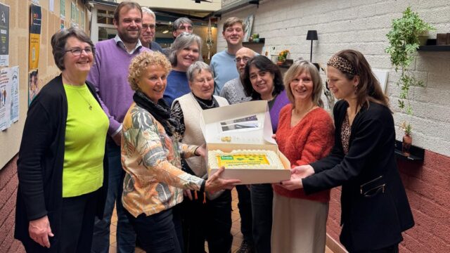 Velsen – D66Velsen heeft voor de vijftiende keer de jaarlijkse Valentijnstaart uitgereikt aan vrijwilligers in de gemeente. Dit jaar ging de taart naar de taalvrijwilligers van Stichting Welzijn en Bibliotheek Velsen, als blijk van waardering voor hun inzet.
