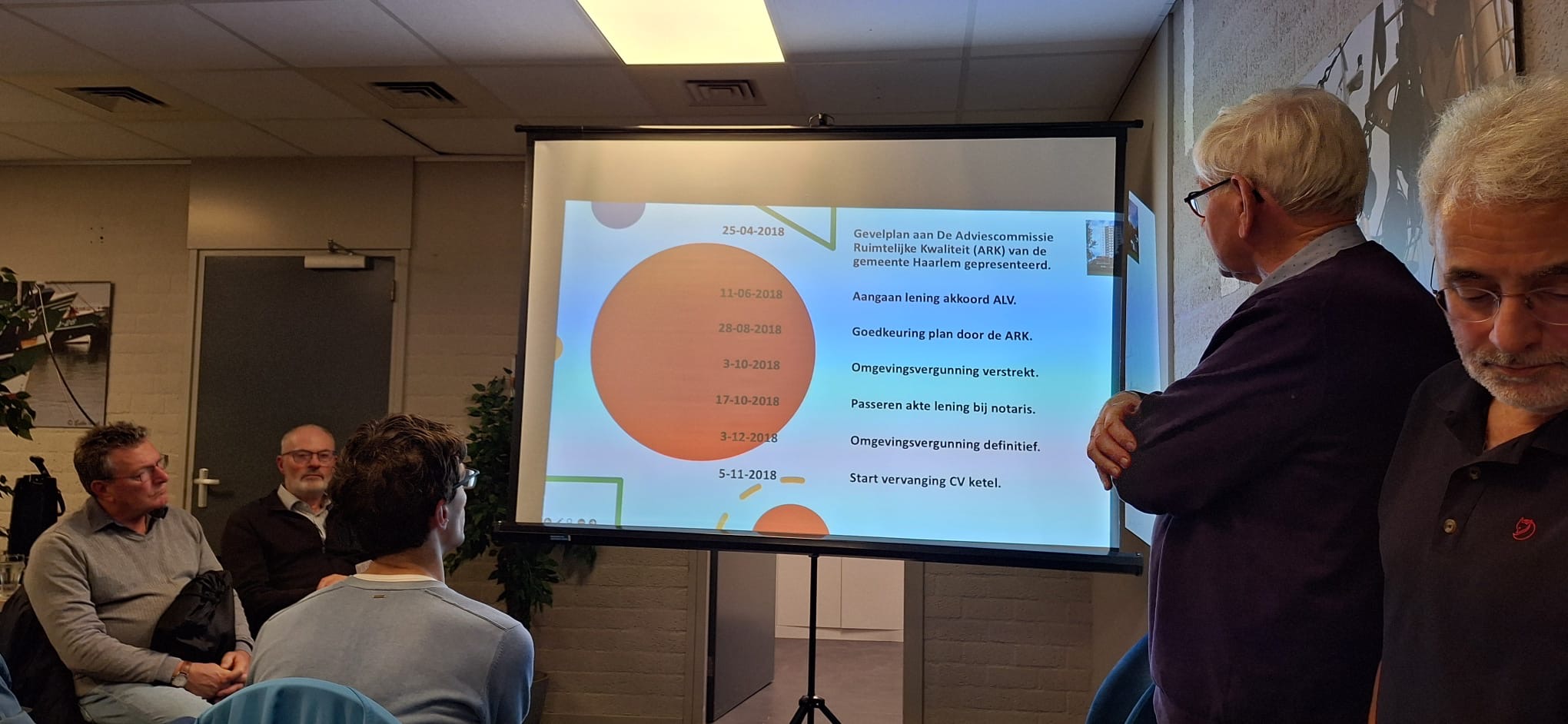 Tijdens de bijeenkomst presenteerde de heer Reeuwijk van VvE De Koch uit Haarlem zijn praktijkverhaal over het renoveren en verduurzamen van hun gebouw. Met veel enthousiasme en bevlogenheid vertelde hij over de stappen die zijn vereniging zette, de obstakels die zij tegenkwamen en het lange adem-karakter van dergelijke trajecten. Ook ging hij in op de financiële kant: investeringen die zorgvuldig moeten worden gepland, maar die aantoonbaar leiden tot betere prestaties, lagere kosten en meer wooncomfort. Zijn verhaal liet zien dat verduurzamen niet alleen noodzakelijk is, maar ook buitengewoon lonend kan zijn.