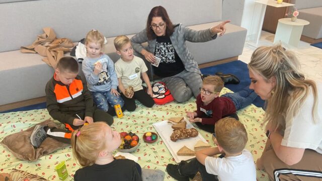 IJmuiden – Afgelopen woensdag was het weer tijd voor het jaarlijkse Burgemeestersontbijt en dit keer was het de beurt aan groep 1/2 van basisschool Het Kompas. Vorig jaar waren de ontbijtende jongens en meisjes wat groter en zaten aan feestelijk gedekte lange tafels, een soort statieontbijt. Dit keer waren er gezellige kleedjes neergelegd en werd het een heuse picknick.