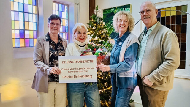 Regio/Velsen – Een keer per jaar, rond kerstmis, stopt De Jong Dakinspectie al zijn klanten in een virtuele loterij-pot om daar een winnaar uit te kiezen. Die winnaar mag de prijs, een gul geldbedrag, aan een zelf te kiezen goed doel geven. Dit jaar kwam Kennemerland Pers, onderdeel van Regio Media Groep in de regio Velsen, uit de loterij.  Dat is dus De Jutter| Hofgeest. De redactie mocht het goede doel bepalen en koos van harte voor Hospice de Heideberg, in onze ogen het liefste huis van Velsen.