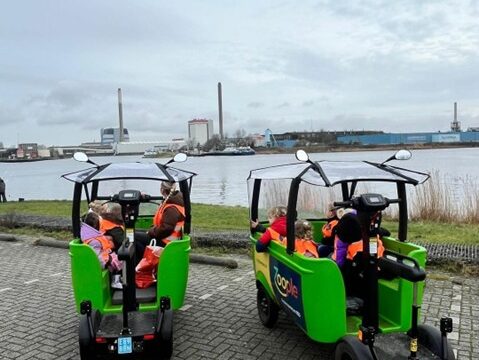 Op deze manier maken de peuters kennis met de ‘echte’ wereld. Naar de pont gaan was een avontuur op zich! De peuters zagen onderweg auto’s, vrachtwagens, fietsen, brommers en bootjes. Daarna gingen zij met de BSO-bussen op de pont om naar de overkant te varen en weer terug.