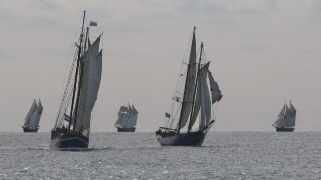 Vorig weekend vond de finish van de laatste zee-etappe van de “Young Professionals” plaats bij IJmuiden. Deze etappe voerde de deelnemers vanaf een punt voor de kust van Scheveningen naar Beverwijk. Met een oostenwind werd het stuk langs de kust met volle zeilen gevaren. Het was een prachtgezicht om ze vanaf de Zuidpier vanuit het zuiden te zien aankomen. Een soort mini-SAIL…! Iets ten zuiden van de pier haalden de schepen hun zeilen binnen, om vervolgens op de motor tussen de pieren door en via de sluizen naar Beverwijk te varen. Op zondag finishte de vloot op het IJ in Amsterdam. (Foto’s: Erik Baalbergen)