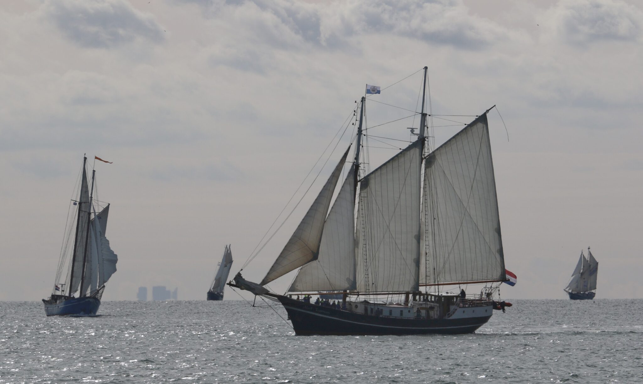 Vorig weekend vond de finish van de laatste zee-etappe van de “Young Professionals” plaats bij IJmuiden. Deze etappe voerde de deelnemers vanaf een punt voor de kust van Scheveningen naar Beverwijk. Met een oostenwind werd het stuk langs de kust met volle zeilen gevaren. Het was een prachtgezicht om ze vanaf de Zuidpier vanuit het zuiden te zien aankomen. Een soort mini-SAIL…! Iets ten zuiden van de pier haalden de schepen hun zeilen binnen, om vervolgens op de motor tussen de pieren door en via de sluizen naar Beverwijk te varen. Op zondag finishte de vloot op het IJ in Amsterdam. (Foto’s: Erik Baalbergen)