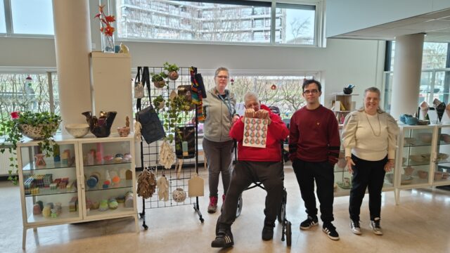 In deze winkel vind je cadeauartikelen die met zorg, aandacht en plezier zijn gemaakt. Voor de cliënten is dit werk betekenisvol. Het geeft structuur, zelfvertrouwen en laat zien waar ze goed in zijn. Van samenwerken tot nieuwe dingen leren: het gebeurt allemaal in het dagcentrum én is te zien in de winkel.