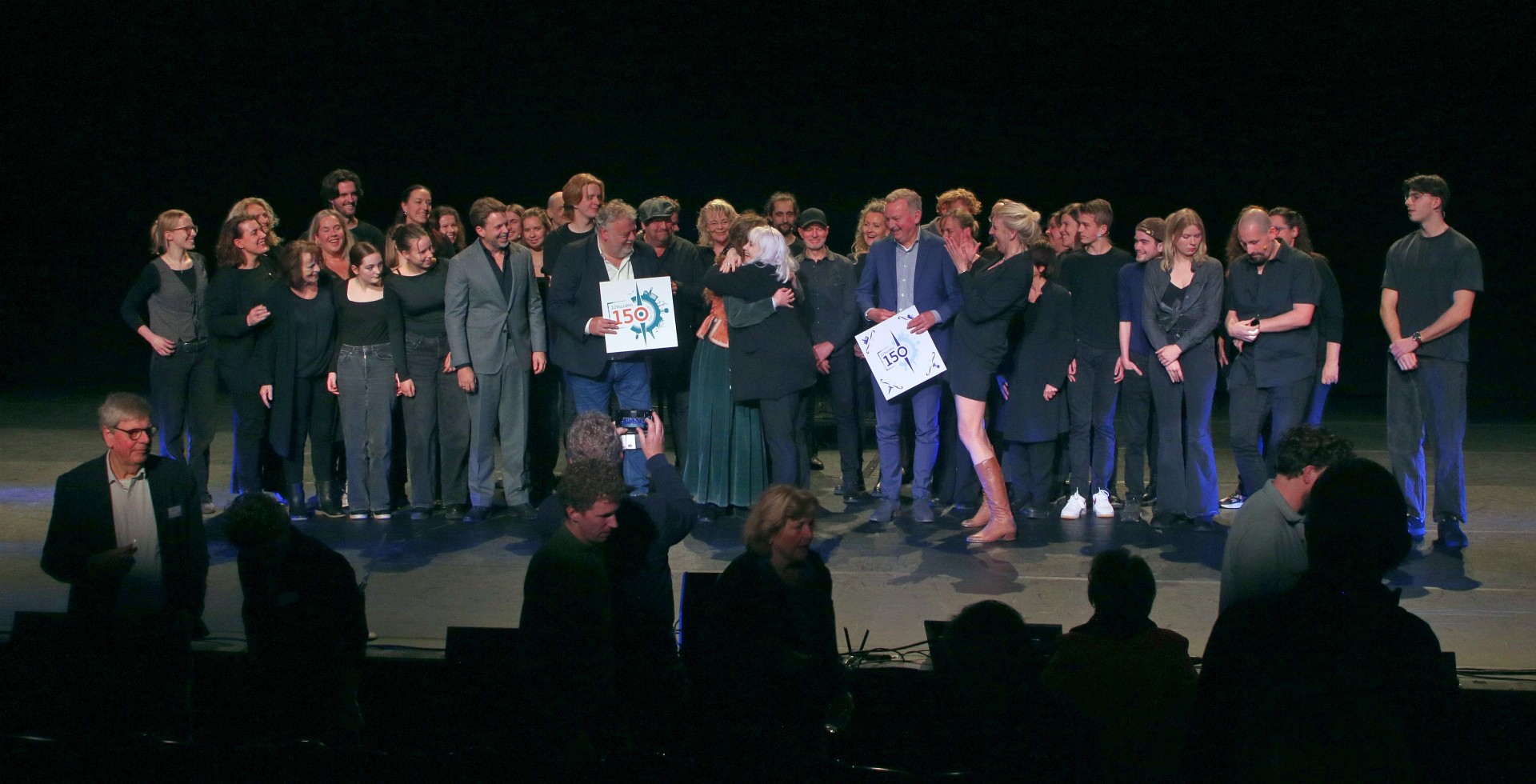 En toen volgde een preview van de jubileummusical De Kanaalgravers, uitgevoerd door de cast van Koel! De aanwezigen kregen een eerste indruk van de voorstelling die op 1 november 2026 in première gaat en het verhaal vertelt van de arbeiders die het kanaal aanlegden. Schrijfster Connie Braam las een passage voor uit De Woede van Abraham. Het script van de musical is gebaseerd op haar eerste boek over het ontstaan van IJmuiden. Connie werd even heel emotioneel toen ze zag hoe haar boek tot leven kwam dus we kunnen ervan uitgaan dat het een prachtige musical gaat worden. Er zijn dan ook nu al heel veel kaarten verkocht. We kunnen terugkijken op een mooi jaar en zeker ook vooruitkijken op een feestelijk 2026.