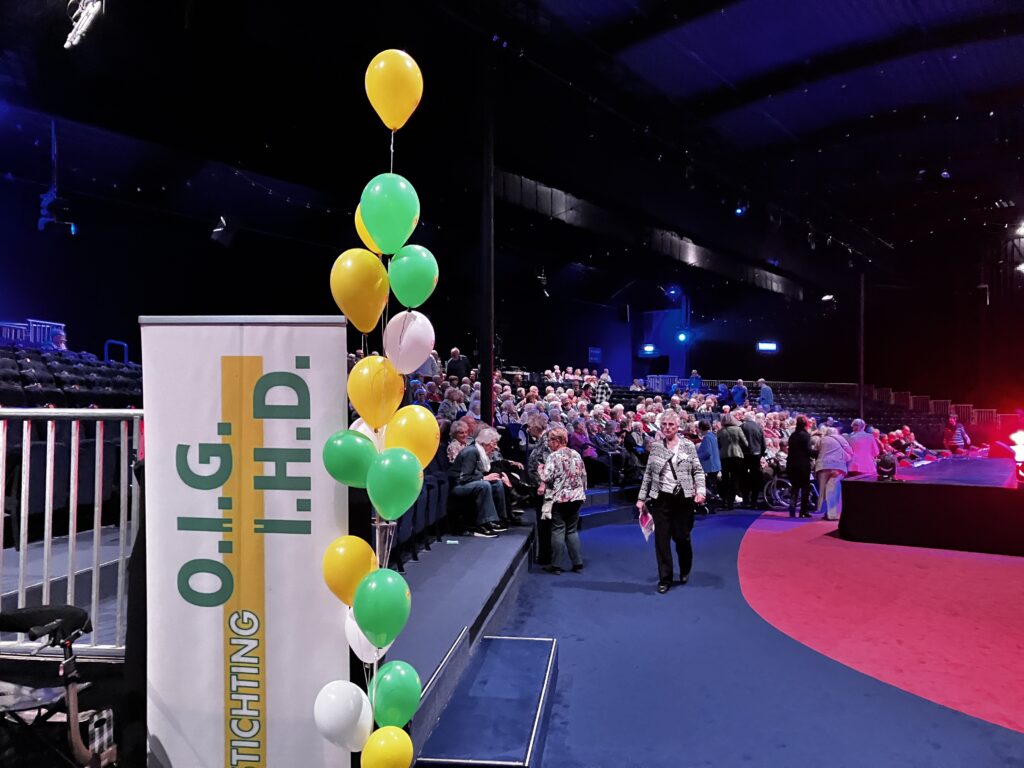 In 2000 is de stichting gefuseerd met Invaliden HulpDienst (I.H.D.) en gingen zij verder onder de naam OIG-IHD. Vandaag de dag heeft de stichting 585 gasten en 160 vrijwilligers. Een groot deel van hen was afgelopen zaterdag 4 oktober aanwezig in het Haventheater voor de 60-jarige jubileumviering. Bij binnenkomst in de theaterzaal laten dia’s zien wat de stichting zoal doet en dat is veel. Dagjes weg naar bloemenvelden, musea, boottochtjes, etentjes, spelletjesmiddagen, samen koffiedrinken, kledingverkoop en nog veel meer.
