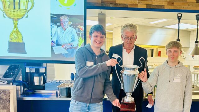 Anouk Blok is directeur Blok System Supply en geeft een update over de Stichting Vrienden van het Technisch en Maritiem VMBO Velsen. Want geld mag geen belemmering zijn om hier je opleiding te kunnen volgen. De vrienden investeren in de toekomst en bieden leerlingen de kans om hun talenten te ontwikkelen en om de vakmensen van morgen te worden. Er blijken maar twee aanwezigen nog geen vriend te zijn maar dat is dus vanaf die ochtend anders. En dan maakt Jan Hinloopen de uitslag van de Stagekanjer van het jaar bekend. Een nipte overwinning voor Frank. Maar eigenlijk zijn deze leerlingen natuurlijk allemaal kanjers. We zijn trots op deze jongeren!