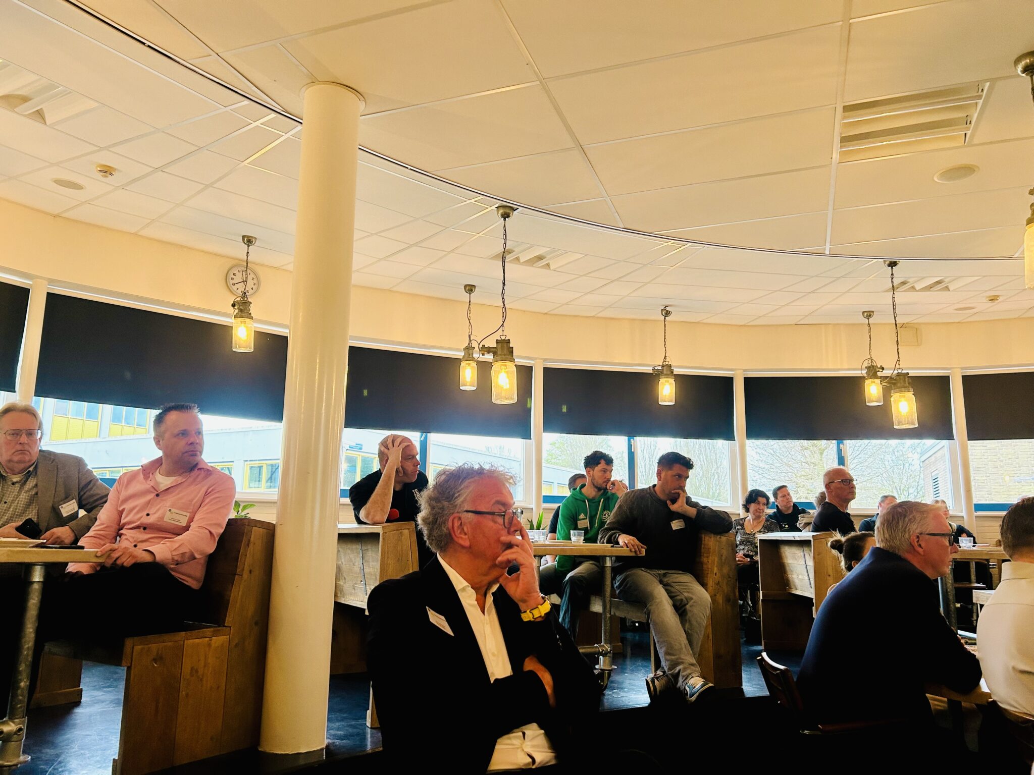 Zo waren ook De Bie Buitenwerken Jorien Beentjes en Erik Muller aan het ontbijten. Zij vertelden: ,,De basis van ons bedrijf zijn echt de leerlingen die stage komen lopen, zij zijn het team van de toekomst. We hebben zelfs een terrein met allemaal ‘technische spelletjes’, zoals een klein elektrisch kraantje. Maar het is ook heel belangrijk dat het onderwijzend team van de scholen altijd op de hoogte is van nieuwe ontwikkelingen.’’ Jan Hinloopen, grote steun en verbinder van onder andere IJmuiden.nl, Telstar maatschappelijk, Tender College, TVC |MCIJ en waarvan eigenlijk niet zegt: ,,Nou die zitten er wel bovenop hoor! Het is ook een soort vicieuze cirkel. Aan de ene kant te kort personeel en te weinig tijd om nieuwe mensen op te leiden en dus te weinig nieuwe aanwas. Dat merken we ook in de havens.’’ Ron van Dijk van Haprotech, dat een uitgebreid opleidingsprogramma heeft, vult aan: ,,De animo om, in ons geval een lasopleiding, te volgen lijken ook wel minder te worden. Terwijl dit soort praktische beroepen zo verschrikkelijk belangrijk zijn. Je toekomst is verzekerd als je iets ‘kan’, dat altijd nodig zal zijn.’’