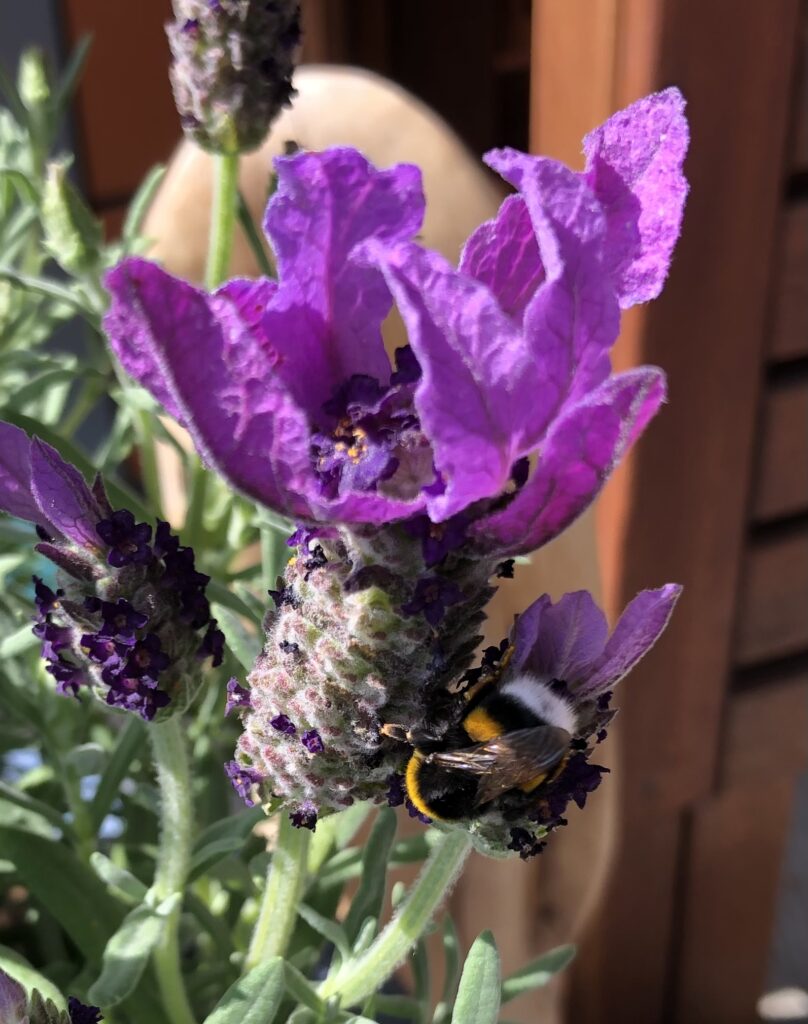 Hommels zijn minder uniek maar wel fotogeniek, getuige onderstaande foto die Erika Meijer op haar balkon maakte. Zij schrijft: ,, Toen mijn man en ik deze week vierden dat we 35 jaar een stel zijn, kregen we een lavendelplant cadeau. Mooie kleur, lekker ruikend. Dat vond deze hommel ook, want meteen nadat we de plant op ons balkon hadden gezet, kwam zij aanvliegen. Prachtig om te zien hoe de hommel te werk gaat. Wel even oppassen dat de hond haar niet weg hapt…’’