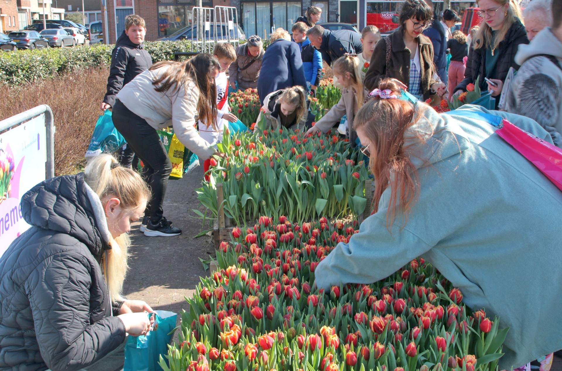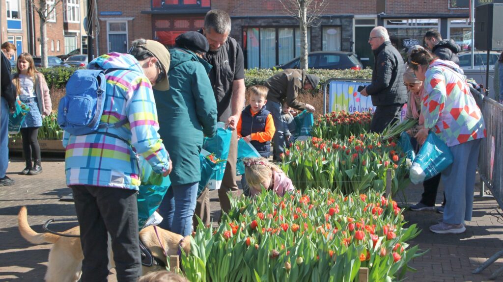 IJmuiden – De Kennemerlaan liet zich afgelopen zaterdag in lentetooi zien! Winkeliers en horecaondernemers van de Kennemerlaan hadden deze zonovergoten eerste zaterdag van deze lente, vanaf het middaguur, een feestelijke tulpenpluktuin op het Kennemerplein ingericht.