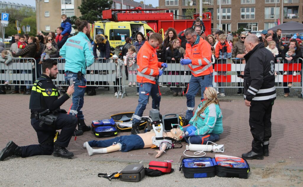 IJmuiden – Sportpark Zeewijk transformeerde afgelopen zaterdag in een oefenterrein voor de 112-Veiligheidsdag. Honderden buurtbewoners en bezoekers kwamen om het werk van de politie, brandweer, ambulance, Marechaussee en heel veel andere hulpverleners van dichtbij te beleven. Het evenement, een initiatief van de wijkagenten van Zeewijk en Duinwijk Martin Eijkenaar en Onur Cakir, bood een unieke en interactieve kijk achter de schermen.