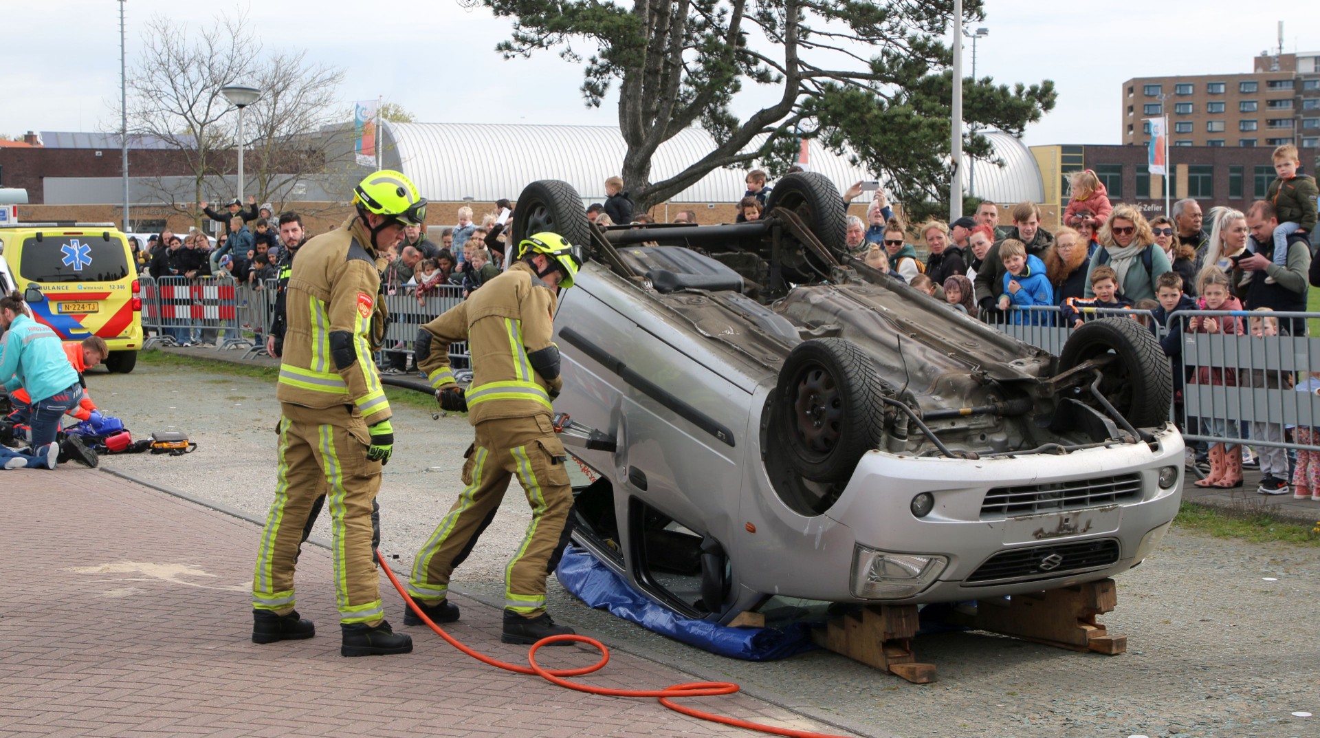De dag stond in het teken van actie en verbinding. Een van de absolute hoogtepunten waren demonstraties van een zwaar verkeersongeval op het terrein, en een aanhouding door de diensthonden van de politie. Terwijl het publiek ademloos toekeek, werkten de politie, brandweer en ambulancedienst nauw samen om een bekneld slachtoffer met hydraulisch gereedschap uit een voertuig te bevrijden. Deze demonstratie toonde de precisie en snelheid die vereist is bij levensreddende operaties.
