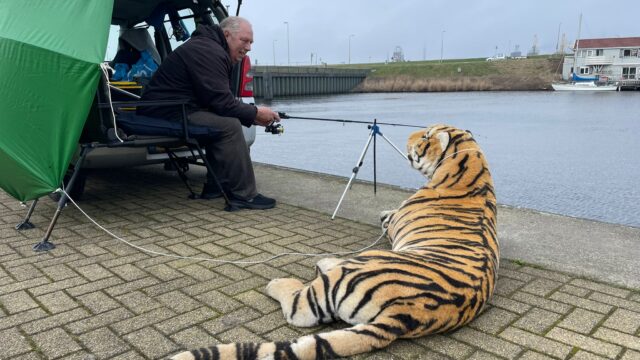IJmuiden – Zelfs op de redactie van de Jutter | Hofgeest ontstond lichtelijke opschudding nadat we twee telefoontjes hadden gekregen dat er donderdagmiddag een levensgrote tijger was gesignaleerd bij de Kleine Sluis. Terwijl we heus wel wat gewend zijn.