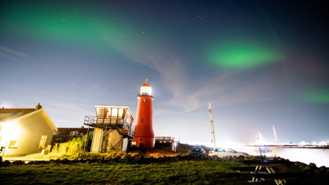 Velsen – In de nacht van maandag 19 op dinsdag 20 januari is in grote delen van Nederland een uitzonderlijk fel noorderlicht (aurora borealis) waargenomen. Een waanzinnig mooi spektakel en zeldzaam krachtig. Fotografen konden hun hart ophalen en het schijnt dat camera’s vangen wat het blote oog niet ziet. De camera van Dennis Gouda legde het wonderlijke verschijnsel vast op de Seinpostweg bij het semafoor. Om kippenvel van te krijgen…