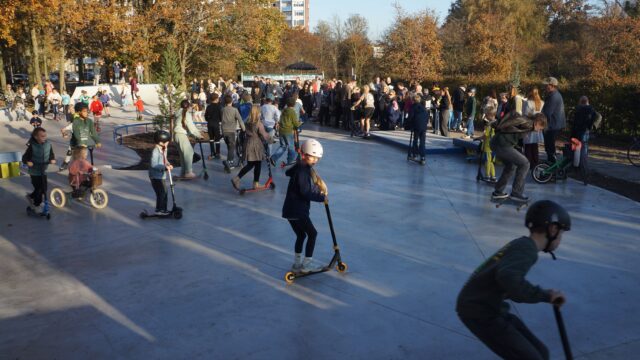 Het is een drukte van belang als wethouder Gideon Nijemanting even na 15.00 uur het woord neemt. Kinderen maken al volop gebruik van de nieuwe skatebaan en hebben amper aandacht voor de woorden van de bestuurder. Het enige dat ze willen is rondjes draaien op deze mooie baan en hun skills op het gebied van skaten, skateboarden en steppen laten zien. Een officieel bord op het terrein attendeert de bezoekers erop dat het skatepark uitsluitend is bedoeld voor iedereen die een skateboard, inline skates, rollerskates, een stuntstep of een speciale BMX-fiets gebruikt. Met gewone fietsen, e-bikes, scooters en andere voertuigen ben je niet welkom op deze baan. Het is maar dat je het weet. En ook: ,,Dit skatepark is geen speeltuin en de minimum leeftijd is 8 jaar.’’