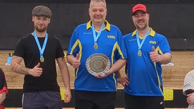 Velsen- Tijdens het Bondskampioenschap Teams klasse ERE Compound op zondag 22 maart 2026 heeft VZOS CP 1 opnieuw de Nederlandse titel veroverd. Het kampioensteam, bestaande uit Tristan Paap, Marcel van Sleeuwen en Daan Mulder, liet gedurende de wedstrijddag zien over uitzonderlijke klasse, rust en scherpte te beschikken. In een bloedstollende ontknoping eindigde VZOS gelijk met OGIO Compound 1, waarna een shoot-off de beslissing moest brengen.